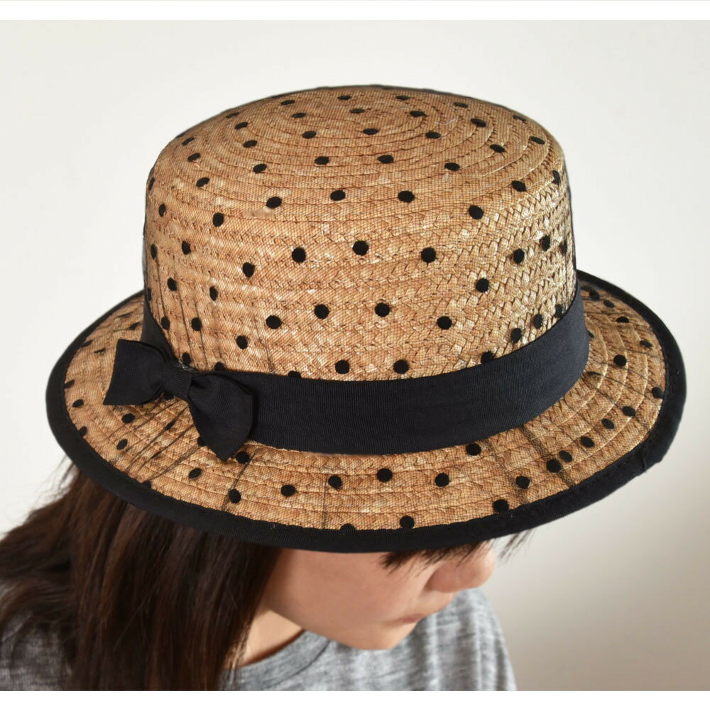 レース付きカンカン帽 ドット柄 水玉模様 レディース 麦わら帽子 麦藁帽子 ストローハット トークハットチュール リボン パナマハット春夏 日よけ UV対策
