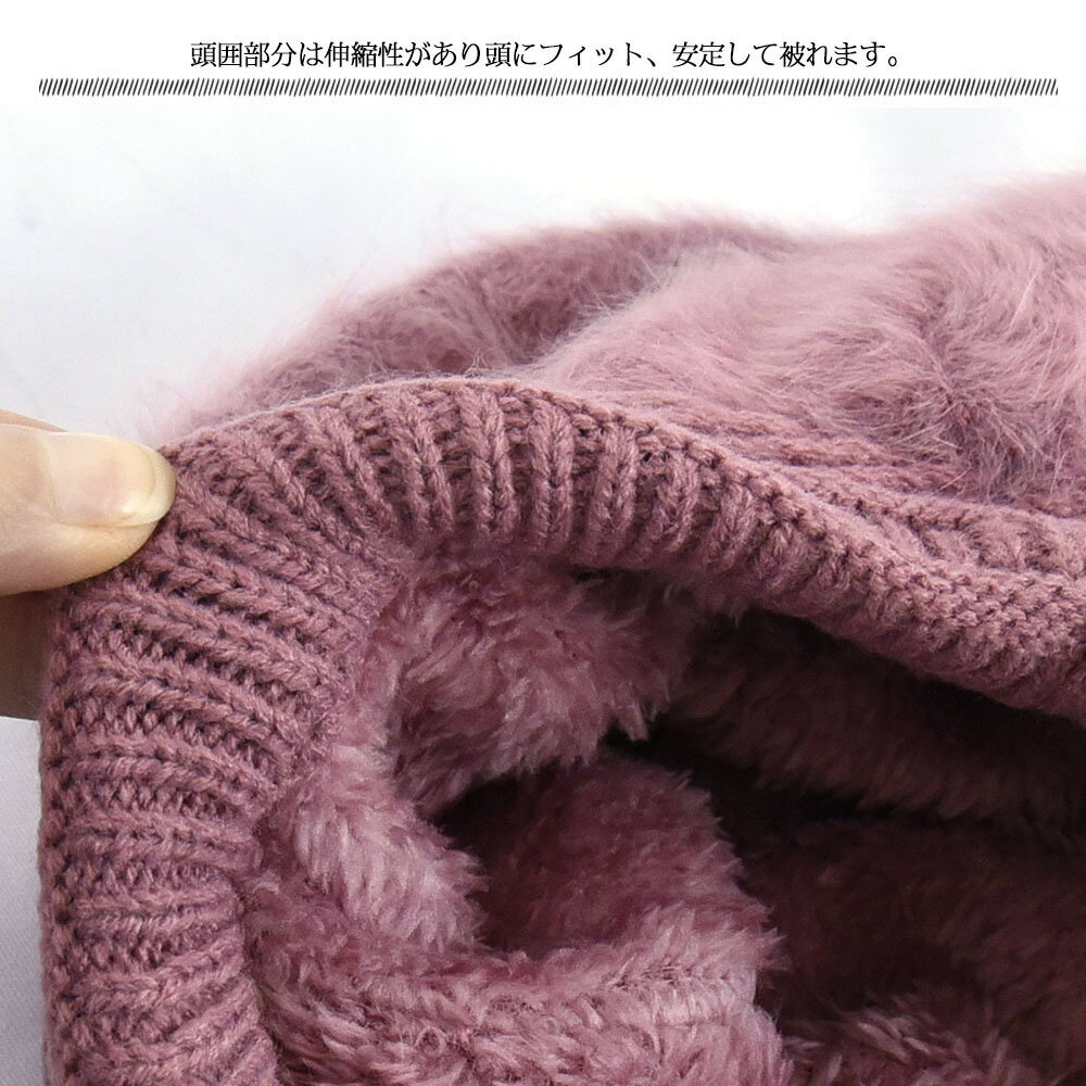 送料無料 ふわふわファー ニット帽 ニットキャップ キャスケット レディース 帽子 ぼうし 秋冬 シンプル 無地 祖母 おばあちゃん 母 還暦 プレゼント