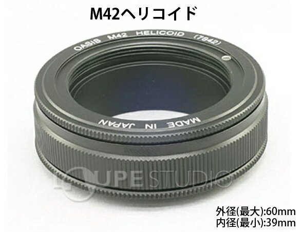 M42ヘリコイド 【ヘリコイド式の接写リング】スペック全長(光路長)16〜26mm重量80g可動距離10mm外径(最大)60mm内径(最小)39mm形式直進式ヘリコイドパーツ接続部M42P1メスM42P1オスその他レンズの向きを任意に固定できる固定リング付 BORG 7842※仕様及び外観は改善のため、予告なく変更することがあります。